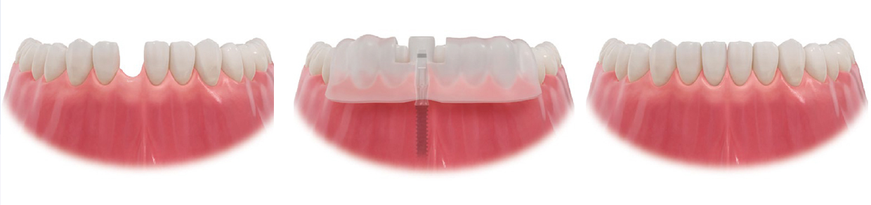 手術当日、天然歯同様の臨時補綴で即日自然な表情を取り戻し、飲食などの生活にほとんど支障がありません。(状態により不可能なこともあります)